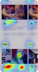 Utilizamos mapas de calor y mapas de desplazamiento den la home o landing page de bienvenida con más de 200 clientes (tatuadores), pudimos ver que la mayoría de usuarios no estaban interesados en ver todas las características de la aplicación, si no que buscaban directamente que estudios se anunciaban.