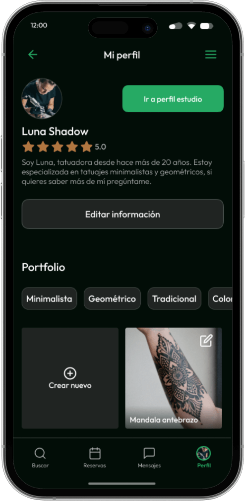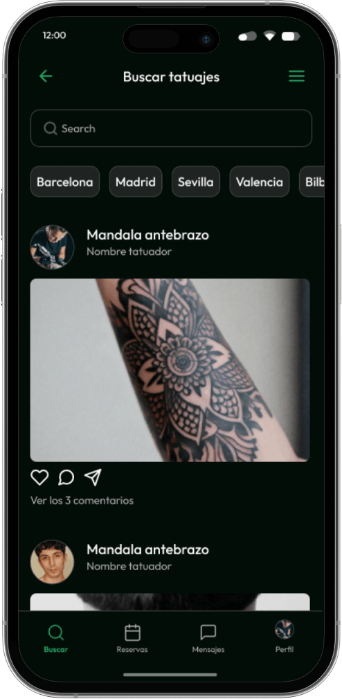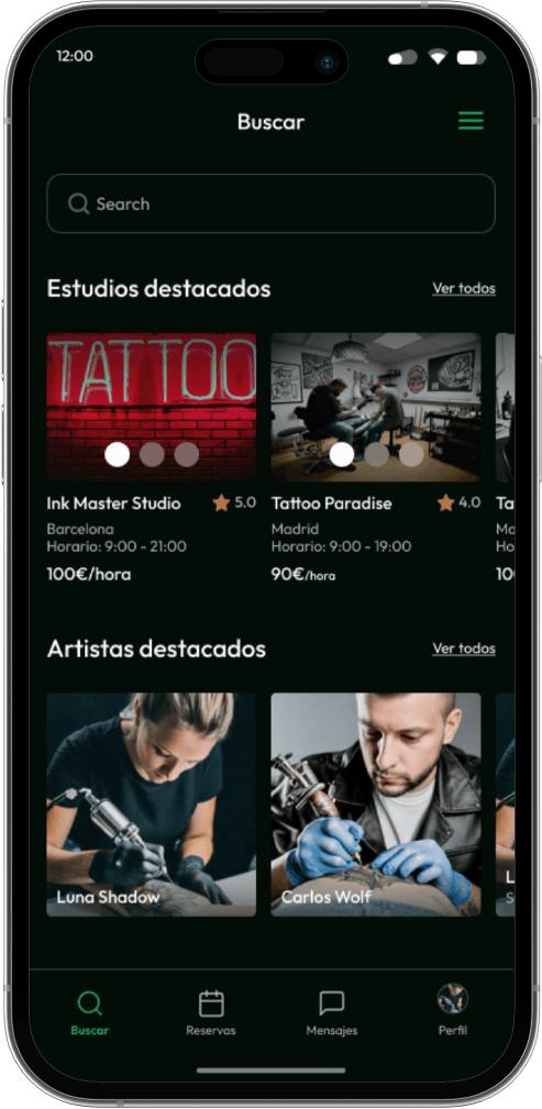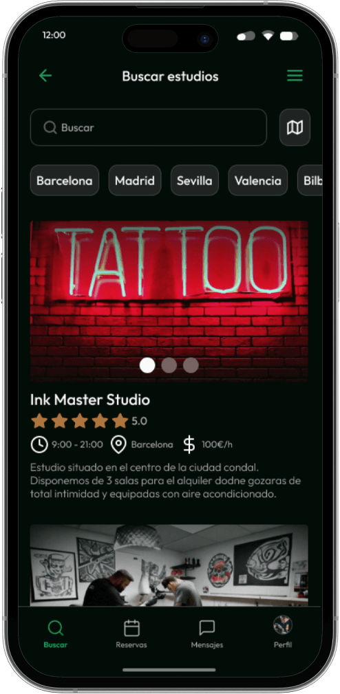 Rápidamente descubrimos que existía un tipo de usuario con el que el cliente no contaba. Lso estudios buscaban tatuadores, eso estaba claro. Pero al poder crear un perfil tanto de estudio como de tatuadores con sus portfolios nacía un nuevo usuario, la persona que quiere buscar su tatuador o estudio ideal para realizarse un tatuaje.