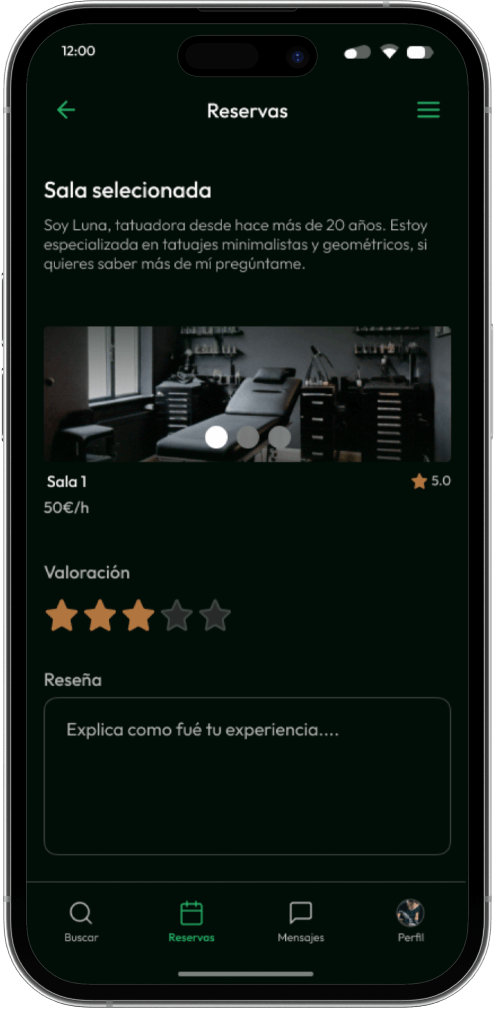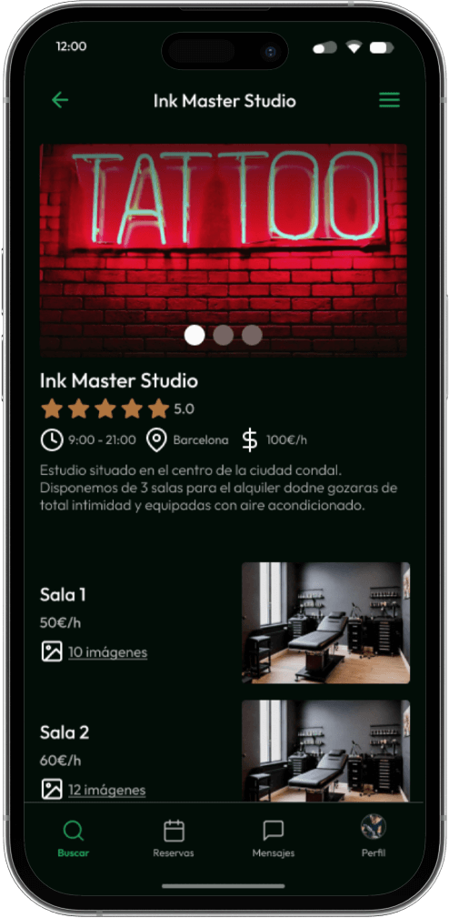 El usuario principal en esta webapp son los estudios de tatuaje, sin ellos no hay salas para alquilar. Suelen ser estudios de barrio con cierto renombre y tamaño, por ello disponen de diferentes salas con diferentes características para alquilar cuando no están llenas.