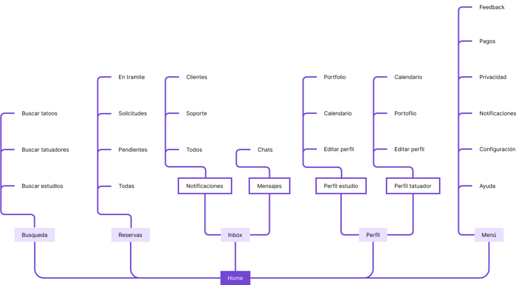 En base a pruebas de card sorting y treemaps con usuarios y las investigaciones anteriores rediseñamos el sitemap de la aplicación para hacerlo más simple e intuitivo para su navegación.